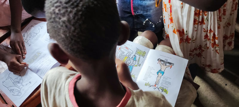 Give bibles to the children and teach them to discover powerful lessons